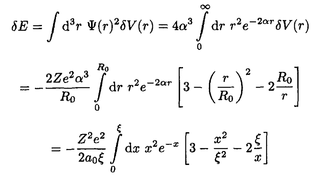 For any physical value of Z, the parameter ξ is very much smaller than unity. One can evaluate the above integral as an expansion in ξ and show that the first term is -0.2ξ3, so the answer is approximately 0.2Z2 ERξ2.