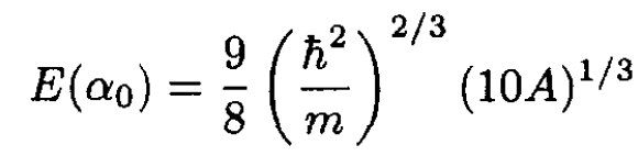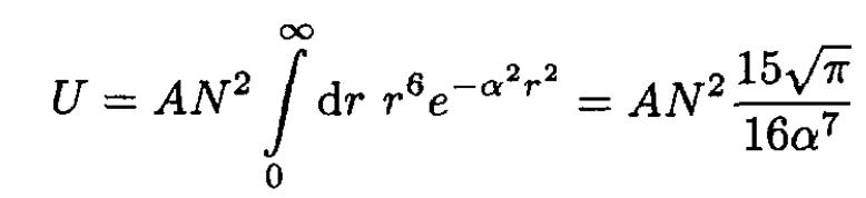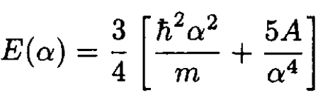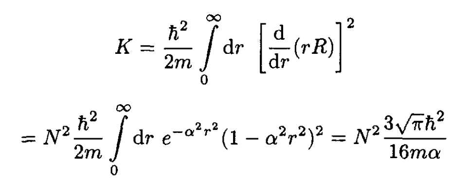 Note the form of the kinetic energy integral K, which again is obtained from Rp2 R by an integration by parts. Again set the derivative of E(α) equal to zero. This determines the value α0 which minimizes the energy: