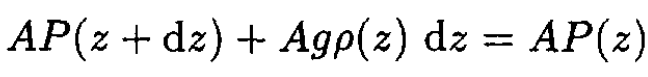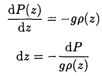 We wish to change the integral over z into an integral over P. To do so, first consider the forces on the slice of atmosphere: