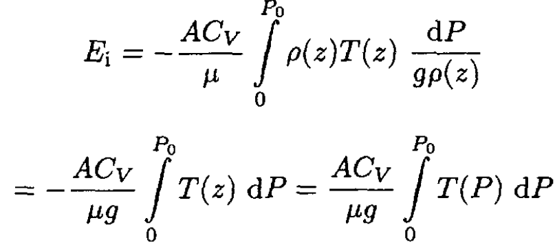 where T is the temperature, P0 is the pressure at the Earth’s surface, μ is the molar mass, Cp is the molar specific heat at constant pressure, and γ ≡ Cp/Cv is the ratio of specific heats.