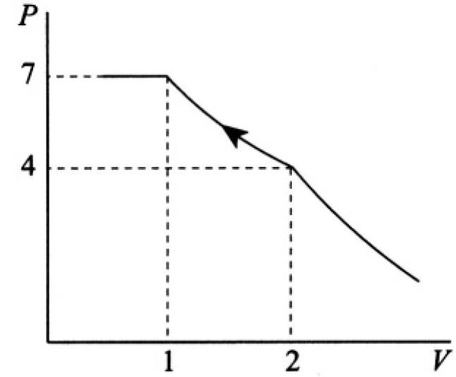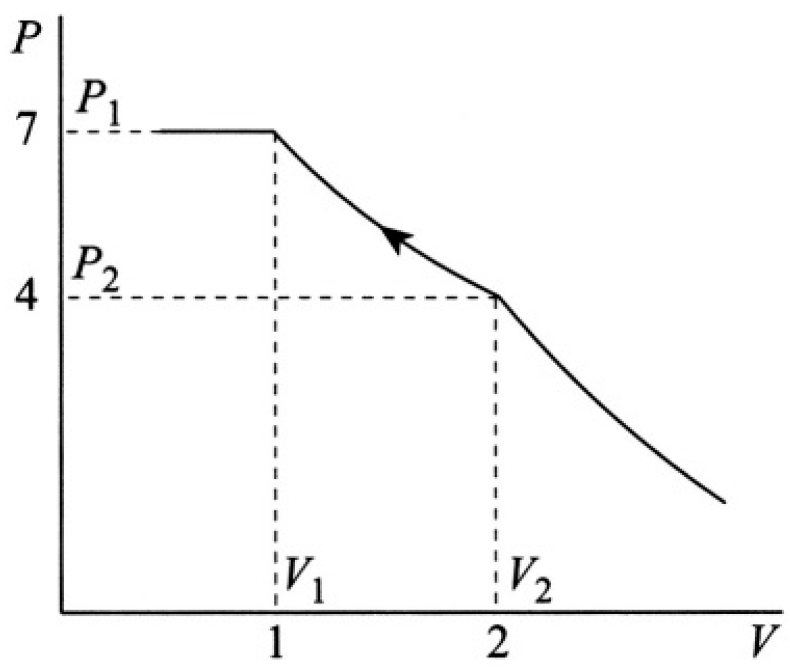 Consider three parts of the plot (see Figure 1.2). At V > V2 there is a regular gas mixture (no condensation). At V1 < V < V2, one of the gases is condensing; let us assume for now it is oxygen (it happens to be true). At V < V1 they are both condensing, and there is no pressure change. Let us write