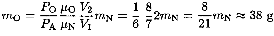 where μO is the oxygen molar mass. For nitrogen a similar equation can be written for (V1, P1):