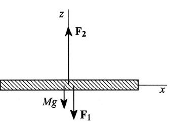 The forces due to the striking of the molecules on the upper and lower surfaces are, respectively, |F1| and |F2| (see Figure 1.2):