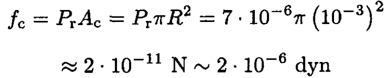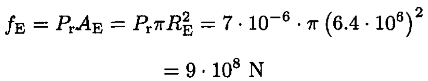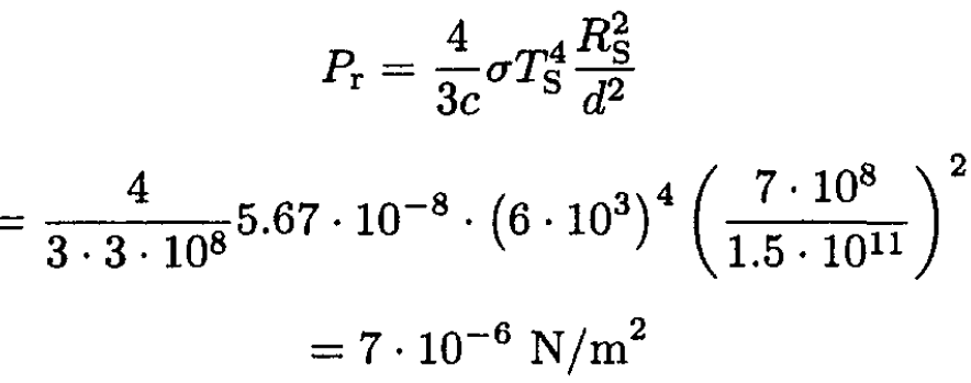 where (RS/d)2 is the ratio of the total flux from the Sun to the flux that reaches the Earth. The radiation force on the Earth