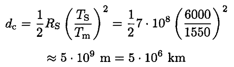 d) Using (3) and denoting the melting temperature of the metallic particle Tm and the distance from the Sun dc, we obtain