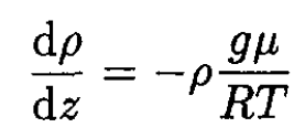 b) Assume that the atmosphere is isothermal with temperature T. Derive the variation of the atmospheric density ρ with height z. Assume that the gravitational acceleration g is a constant and that the density at sea level is ρ0.
