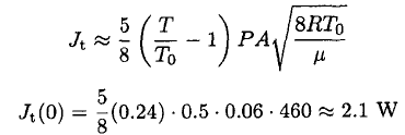 where n is the concentration of molecules and (v) is their average velocity. The power due to the thermal conductance is
