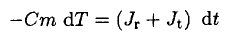 So, we can see that radiation loss has about the same order of magnitude as thermal conductance at these parameters. Therefore the properties of the thermos can only be improved significantly by decreasing both the emissivity and the residual pressure between the walls. The energy dissipated is equal to the energy change of the mass m of the tea: