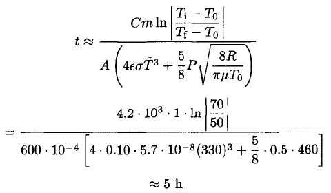 where T is the temperature of the tea, T0 is room temperature, and the Stefan–Boltzmann constant σ = 5.7 × 10-8 W/m2K4. Initially, T = 363 K, T0 = 393 K. So