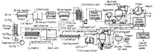 يحمل الكلور الحار المنطلق عند الانود كثيرا من بخار الماء. فجرت اولا عملية تبريد لتكثيف معظم البخار ومن ثم تجفيفه بحمض الكبريتيك في جهاز غسل او في برج كما نلاحظ في الصورادناه .