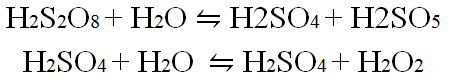 يجري اخضاع ناتج الخلية ، اي الملح الفوقي ، او الحامض ذو النسبة العالية من الاكسجين ، وحمض الكبريت في الماء الى الحلمأة عند 60 - 100 مئوية لإعطاء بيروكسد الهيدروجين ، كما نرى في التفاعلين المبسطين التاليين :