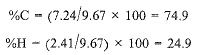 وعلى سبيل المثال، نجد أن عينة من الميثان وزنها 9.67 مغ تعطي 26.53 مغ من CO2 و 21.56 مغ من H2O.