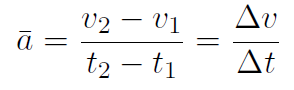 We have seen that velocity tells us how quickly position changes. Acceleration tells us how much velocity changes. The average acceleration is defined as:
