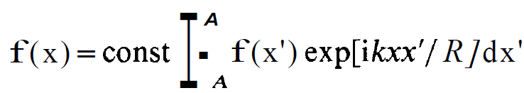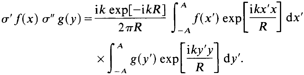 and a corresponding equation for g(x). Eq. (3.14) is called an integral equation and it has been solved exactly. The solutions are given by the angular wave functions in prolate spherical coordinates as defined by Flammer. But probably hardly anybody is familiar with this kind of wave functions. Fortunately, for our purposes the solution of (1.14) can be written in a very familiar form provided the field has not too many nodes in the x, y plane. In such a case it is well concentrated around the axis so that x/A << 1. If the field is strongly concentrated, the contributions of the integral in the region of x' ≈ ± A are practically negligible and we can extend the limits of the integral to infinity. Therefore instead of (1.14) we now have to solve