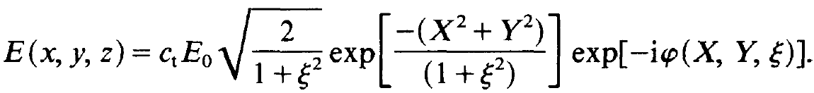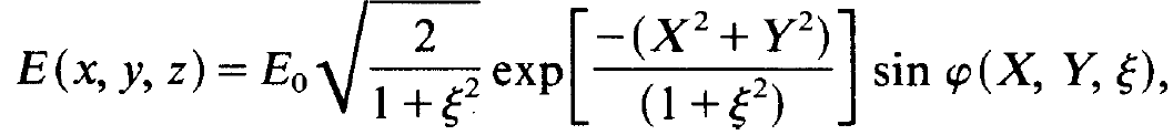 As we may see, in x, y-direction the field is still Gaussian though the spot size varies along the laser axis. The function sin φ looks rather complicated but a little analysis reveals that it has the following structure: