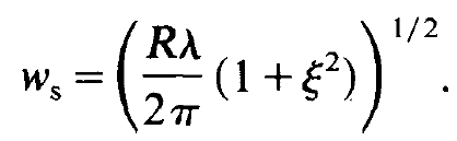 We may define the spot radius, w,, by that radius where (1.18) has dropped to l/e, whieh yields