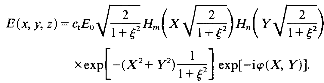 To obtain the field inside the resonator, the factor c, must be omitted and exp[-iφ(X, Y)] be replaced by sin(φ(X, Y)). In order to calculate the losses by diffraction, the finite size of the mirrors is, of course, crucial. The analysis shows, however, that the losses due to diffraction are in