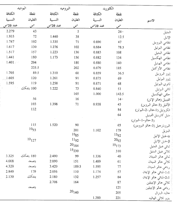 الجدول 1.1: هاليدات الألكيل