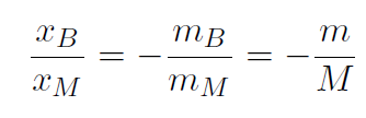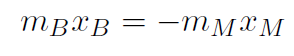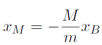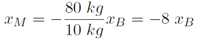Example A baby of mass mB sits on a see-saw. Mary's mass is mM. Where should Mary sit in order to balance the see-saw ? Work out a formula and also a numerical answer if mB = 10 kg and mM = 80 kg.