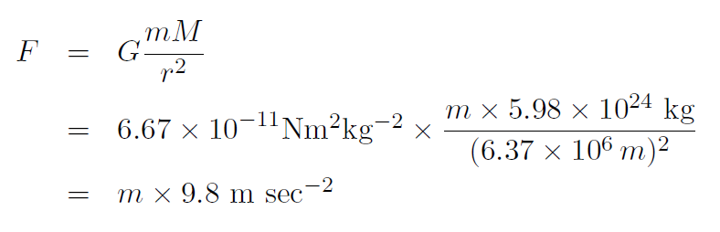 where g = 9.8 m sec-1 is the acceleration due to gravity at the surface of the Earth? Well, if