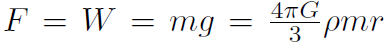 where M is the mass contained within the dotted circle (Figure 1.1) and r is the radius of the dotted circle. Now when the particle falls through the hole, M keeps getting smaller because r gets smaller as the particle falls towards the center of Earth. The density of material in Earth is