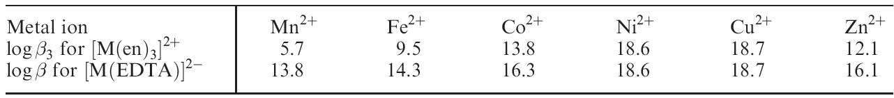 Table 1.1 Overall stability constants for selected high-spin d-block metal complexes.