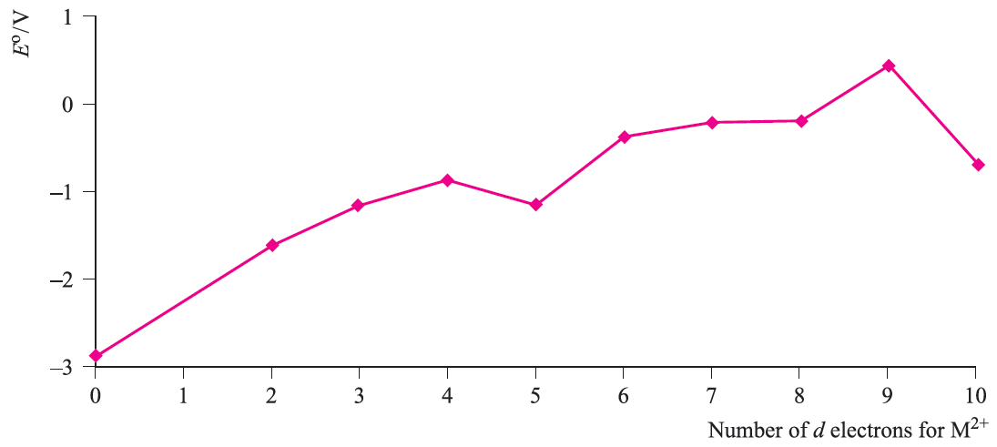 Fig. 1.2 The variation in values of Eo(M2+/M) as a function of d n configuration for the first row metals; the point for d0 corresponds to M = Ca.