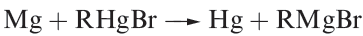 Transmetallation of a suitable organomercury compound is a useful means of preparing pure Grignard reagents (equation 1.2), and transmetallation 1.3 can be used to synthesize compounds of type R2Mg.