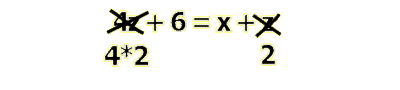 This leaves us a more manageable equation, 4 * 2 + 6 = x + 2 (remember that * means multiply). After simplifying things a little we get 14 = x + 2. Subtract 2 from each side and you'll discover that x = 12.