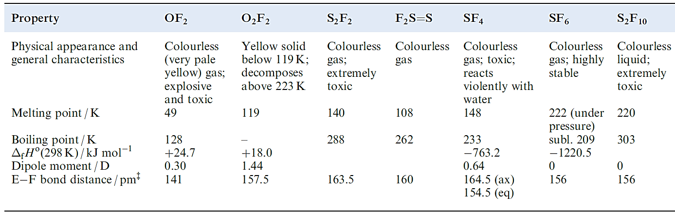 Table 1.1 Selected physical properties of oxygen and sulfur fluorides.