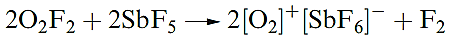 The low-temperature decomposition of O2F2 initially yields O2F- radicals. Even at low temperatures, O2F2 is an extremely powerful fluorinating agent, e.g. it inflames with S at 93 K, and reacts with BF3 (equation 15.8) and SbF5 (reaction 1.4).
