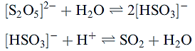 During the fermentation process in the manufacture of wine, SO2 or K2S2O5 is added to the initial wine pressings to kill microorganisms, the presence of which results in spoilage of the wine. Molecular SO2 is only used for large scale wine production, while K2S2O5 is the common additive in small scale production. In acidic solution, [S2O5]2- undergoes the following reactions:
