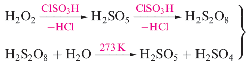 The reaction between cold, anhydrous H2O2 and chlorosulfonic acid yields peroxomonosulfuric acid, H2SO5, and peroxodisulfuric acid, H2S2O8 (scheme 1.1). Conversion of H2S2O8 (Table 15.8) to H2SO5 (1.1) occurs by controlled hydrolysis.