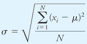 The population standard deviation σ, which is a measure of the precision of the population, is given by the equation