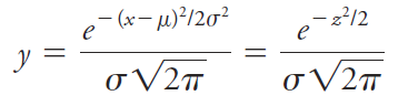 Note that z is the relative deviation of a data point from the mean, that is, the deviation relative to the standard deviation. Hence, when x - μ = σ, z is equal to one; when x - μ = 2σ, z is equal to two; and so forth. Since z is the deviation from the mean relative to the standard deviation, a plot of relative frequency versus z yields a single Gaussian curve that describes all populations of data regardless of standard deviation. Thus, Figure 1.1b is the normal error curve for both sets of data used to plot curves A and B in Figure 1.1a. The equation for the Gaussian error curve is