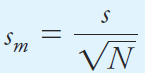 The probability figures for the Gaussian distribution calculated as areas refer to the probable error for a single measurement. Thus, it is 95.4% probable that a single result from a population will lie within ±2σ of the mean m. If a series of replicate results, each containing N measurements, are taken randomly from a population of results, the mean of each set will show less and less scatter as N increases. The standard deviation of each mean is known as the standard error of the mean and is given the symbol sm. The standard error is inversely proportional to the square root of the number of data points N used to calculate the mean as given by Equation 1.1.