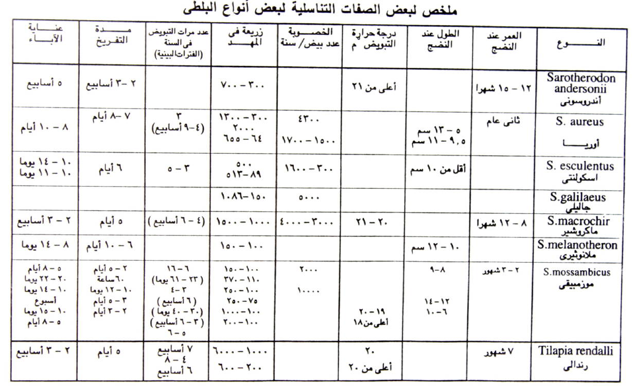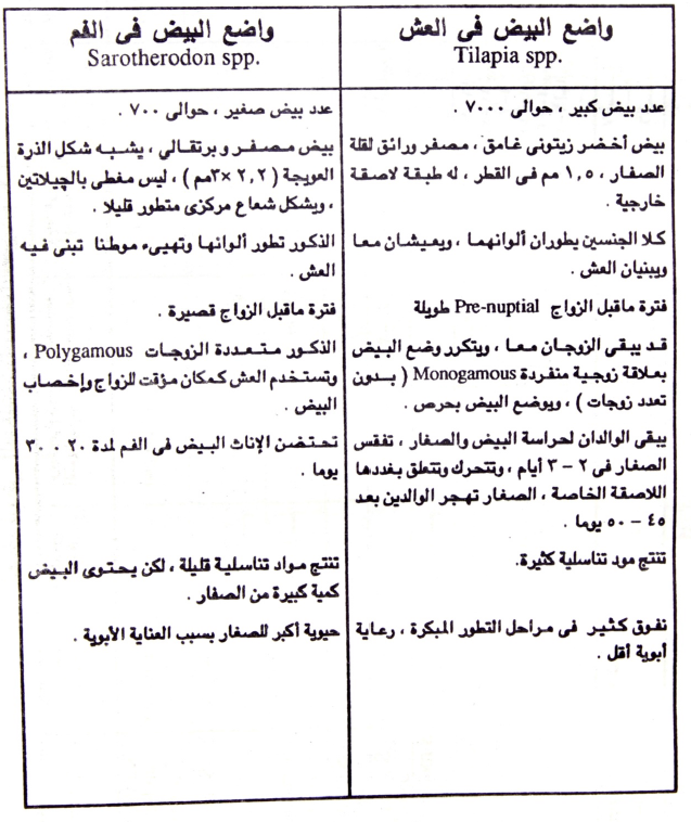 مقارنة الخصائص التناسلية للبلطي الذي يضع بيضة في عش او في الفم