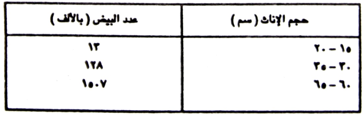 علاقة حجم الجسم وعدد البيض في الإناث الناضجة: