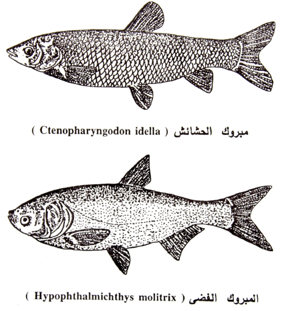 ومبروك الحشائش (Ctenopharyngodon idela) Grass Carp مبروك صيني يتبع عائلة Cyprinidae طويل الجسم (اقصي طول قياسي ۱۲۰ سم) كبير القشور وقصير الزعانف القوية ويصل وزنه حتي 5۰ كجم ويتغذي علي الحشائش والنباتات المائية الراقية والطحالب، لون الجسم مصفر الي رمادي غامق ببريق فضي. وتقوم وزارة الري بتفريخه بغرض تطهير قنوات الري والصرف من الحشائش بأسلوب المقاومة البيولوجية، ولهذا الغرض انتشر المبروك هذا من مصدره الأصلي في أنهار الصين إلى أنحاء العالم حوالي عام ۱۹6۰، ويستغل في المزارع المختلطة كمحول لبقايا النباتات ومتحكم في ومنظم للحشائش.