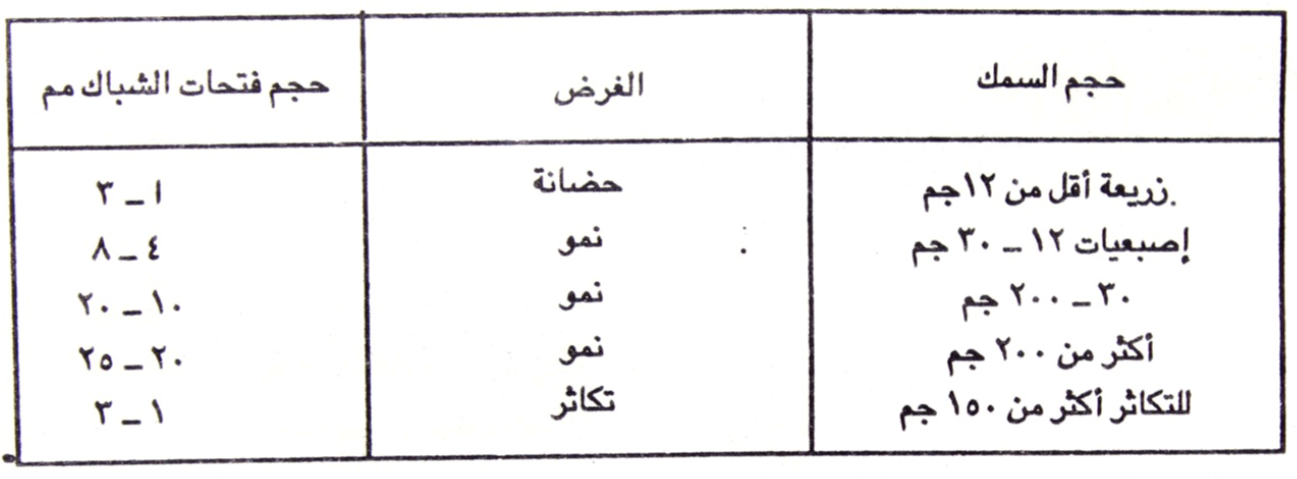 - تخزين السمك بكثافة مناسبة مع الموقع والنوع وطرق الرعاية.