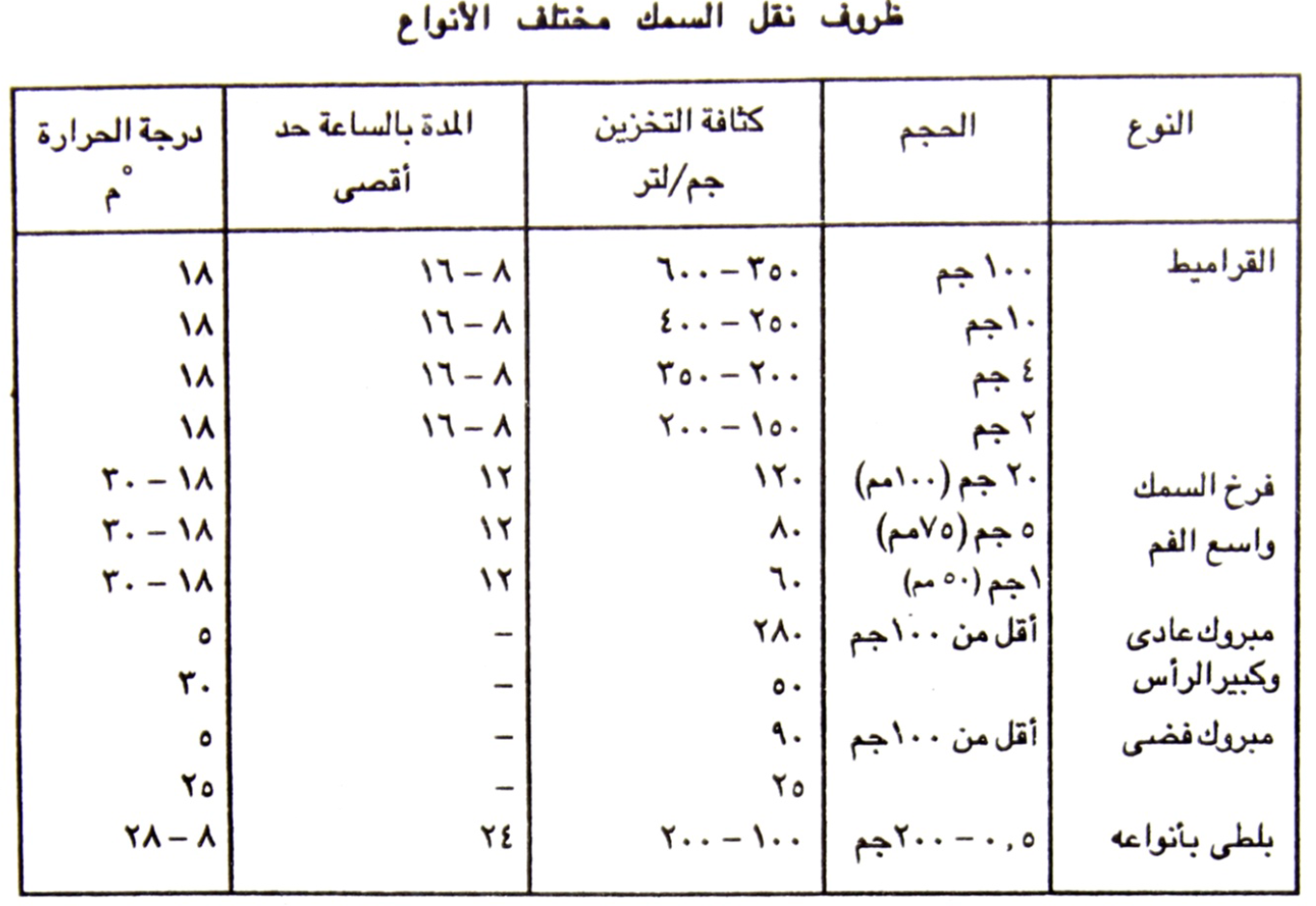 ظروف نقل السمك مختلف الأنواع