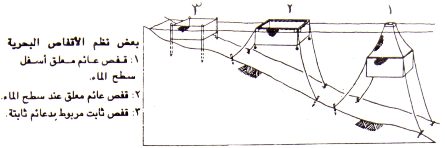 وتستخدم في اقفاص البلطي شباك نيلون او شباك بولي ايثيلين ذات احجام فتحات مختلفة كالتالي:
