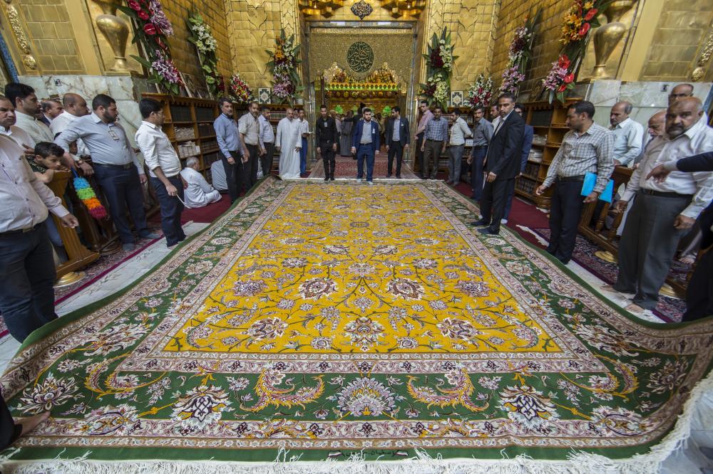 وتزامناً مع أفراح الموالين في شهر شعبان الخير قام قسم رعاية الحرم الشريف في العتبة العبّاسية المقدّسة بفرشها عند مدخل باب قبلة الحرم الطاهر، السجّادة المذكورة بحسب ما بيّنه (علي حكيمي) محاكة من الخيوط والأصواف الطبيعيّة والحرير الطبيعيّ، وهي من أجود الأنواع وتمتاز بالألوان الثابتة التي لا تتغيّر ونُسجت يدويّاً بناءً على تصميمٍ خاص باستخدام زخارف ومنقوشات نباتيّة، وأُخرجت بشكلٍ يليق بها لتكون من مفروشات الصحن الشريف.