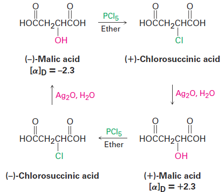Fischer called Walden’s discovery “the most remarkable observation made in the field of optical activity since the fundamental observations of Pasteur.” Because (-)-malic acid was converted into (+)-malic acid, some reactions in