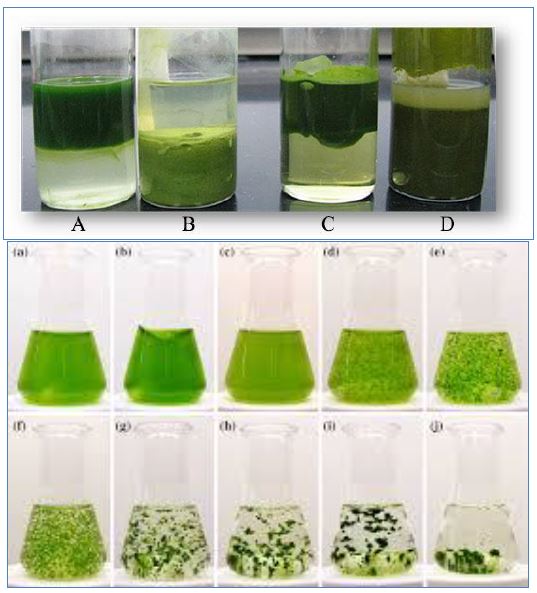 وتحدث الظاهرة نتيجة عدة آليات فهي في الطحالب تعتمد على تكوين مكوثرات حيوية خاصة نتيجة لفعالية أنزيمات خارجية أو تتكون داخل الخلايا وتفرز إلى خارج الخلايا مؤدية إلى تغيير الشحنات على السطوح الخارجية وتحدث عادة عند ارتفاع الأرقام الهيدروجينية لماء البرك مؤدية إلى تجمع الأيونات المعدنية الموجبة وارتباط الخلايا مع بعضها مكونة لبد ثقيلة الوزن فتغطس أسفل الطور السائل، أما في الخمائر فتكون لها آلية أخرى اذ تعتمد على تكوين تراكيب خاصة على جدران الخلايا تؤدي إلى تجمعها وبالتالي انفصالها من الطور السائل لوسط التخمر.