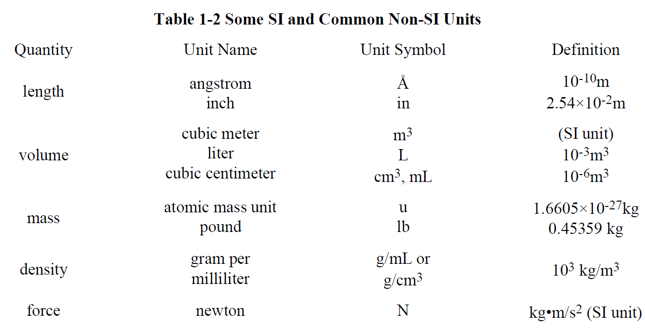 Many non-SI units remain in common use; some of these are given in the Table 1-2.