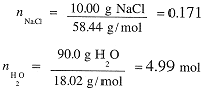 (2) One liter of solution weighs 1071 g and contains 107.1 g NaCl/L; converting to moles, we have [NaCl] = [Na+] = [Cl-] = 1.83 mol/