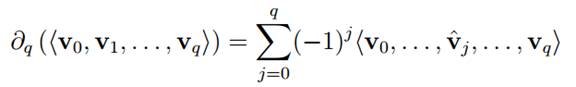α(v0, v1, . . . , vq) = (−1)j〈v0, . . . , vˆj, . . . , vq〉 + (−1)k〈v0, . . . , vˆk, . . . , vq〉,