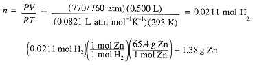 How many grams of zinc must be dissolved in sulfuric acid in order to produce 500 cm3 of hydrogen at 20°C and 770 torr?