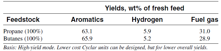 Table 1.1: Product yield from saturated LPG feed to the cyclar process